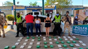 “Gracias a los controles que ejerce la Polfa en La Guajira para cerrarle el paso a la ilegalidad, en las últimas horas fueron capturadas tres personas, dos mujeres y un hombre que se movilizaban en un vehículo el cual fue inspeccionado y donde se encontraron 57 paquetes de clorhidrato de cocaína encaletados en compartimentos hechizos del automotor”, se lee en un comunidad de prensa emitido por la Policía Nacional.