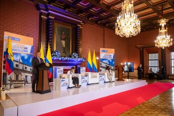 En la decimoquinta jornada de ‘Jóvenes a la Cancillería’, el jefe de Estado señaló que, “ojalá esté yo viendo en 20 o en 30 años a futuros cancilleres, ministras de relaciones exteriores, viceministros, embajadores que con su formación y su visión integral de la política exterior contribuyan al nombre del país”.