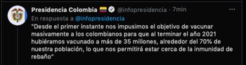 “En total, Colombia ha adquirido 61,5 millones de dosis, con una inversión superior a los 2 billones de pesos, que permitirán vacunar a 35 millones 250 mil personas durante el año 2021″, agregó el funcionario