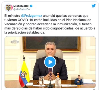 El ministro de Salud, Fernando Ruiz, confirmó que dentro del Plan Nacional de Vacunación en Colombia se incluirá a la población que ya padeció covid-19. Según el jefe de cartera, esta decisión se dio luego de revisar la evidencia científica donde se comprobó que las personas se pueden volver a contagiar del virus.