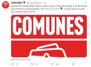 “Queremos presentarles nuestro nuevo logo y darle las gracias a las personas que enviaron sus propuestas. ¡#SomosComunes! La vida digna y la paz son nuestra razón de ser”, fueron las palabras en Twitter del partido político para presentar el cambio en la piza visual que lo identifica.