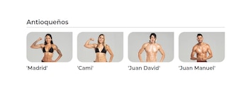 Por otro lado, están los modelos Juan David Zapata Foronda y Juan Manuel Gil Gómez de 24 y 25 años, respectivamente. Zapata practica waterpolo, crossfit y entrenamiento funcional, mientras Gil practica natación desde pequeño, y se especializó en clavados de altura.