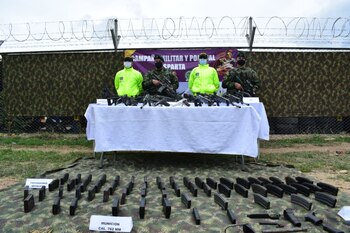En el corregimiento de Las Mercedes, en el municipio de Sardinata, en Norte de Santander, el Ejército junto a la Fuerza Aérea, la Fiscalía y la Policía, encontró otro arsenal de armamento perteneciente, al parecer, al grupo Los Pelusos que delinque en esa zona del país.