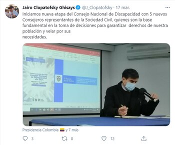Clopatofsky explicó que, gracias al acompañamiento de la Consejería “en la actualidad 23 de los 32 departamentos y cinco de los seis distritos cuentan con su Política Pública de Discapacidad. Cinco más están en el proceso de construcción del Plan de Acción y otros cuatro están recibiendo el acompañamiento por parte de los enlaces territoriales de la Consejería a través de la asistencia técnica para brindar los lineamientos y la ruta establecida”, dijo en el diario.