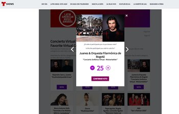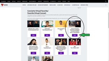 2. Cuando se esté en la página, hay que buscar la categoría, Mejor Concierto Virtual, en la que fue nominado #VolverteAVer, el concierto de Juanes y la Orquesta Filarmónica de Bogotá.