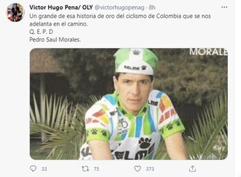 “Un grande de esa historia de oro del ciclismo de Colombia que se nos adelanta en el camino. Q. E. P. D Pedro Saul Morales”, escribió en Twitter Víctor Hugo Peña.