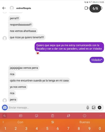 La deportista le expresa que se siente incómoda con esos mensajes, pero el hombre insiste y le dice que va a ir a Chapinero y que allá se pueden encontrar e incluso ir a la casa de él.