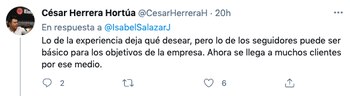 Entre los mismos usuarios de la plataforma hubo opiniones divididas. Por un lado, quienes no estaban de acuerdo con dicho procedimiento al interior de las organizaciones, pues, según estos, la fama de una persona no debe soportarse a partir de la cantidad de seguidores que tienen en una red social: “Supongamos que en mis redes sociales no comparto nada relacionado con mi trabajo o empresa. En ese caso qué? Es una red personal. Para eso cada compañía tiene sus cuentas en redes”, fue el comentario de una usuario.