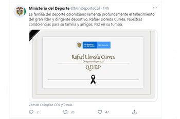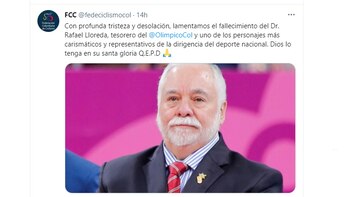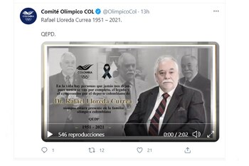 En la tarde de jueves 29 de abril, el Comité Olímpico Colombiano (COC) y el Ministerio del Deporte lamentaron el fallecimiento de Rafael Lloreda, a sus 69 años, a causa del coronavirus. Lloreda fue el presidente de la Federación Colombiana de Voleibol y era el actual tesorero del COC.