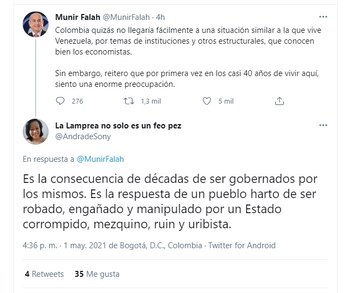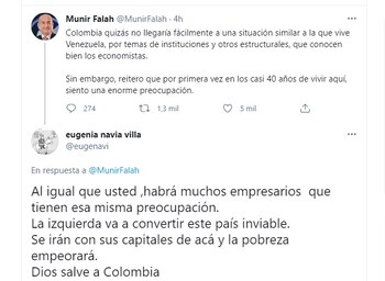 El trino del empresario generó una ola de opiniones divididas sobre su postura. “Al igual que usted, habrán muchos empresarios que tienen esa misma preocupación. La izquierda va a convertir este país inviable. Se irán con sus capitales de acá y la pobreza empeorará. Dios salve a Colombia”, comentó una tuitera.