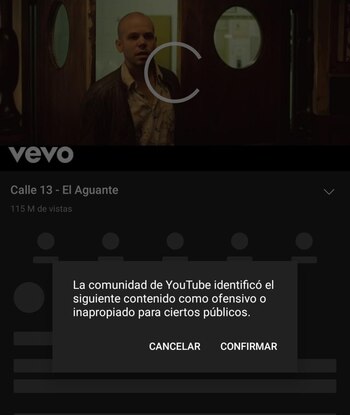 Por último, al ingresar a YouTube, para Colombia, y buscar la canción El aguante de Residente antes de reproducirse aparece un anuncio que dice que es contenido inapropiado. “La comunidad de YouTube identificó el siguiente contenido como ofensivo o inapropiado para ciertos públicos”, dice la notificación al intentar escuchar la canción.