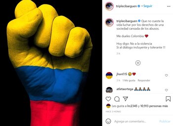 “Que no cueste la vida luchar por los derechos de una sociedad cansada de los abusos. Me dueles Colombia. Hoy digo: No a la violencia. Sí al diálogo incluyente y tolerante”, manifestó la deportista.