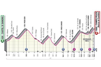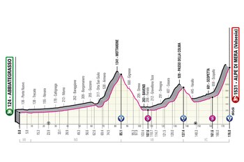 Es la primera de dos etapas puntuadas con cinco estrellas por la organización del Giro, por su dificultad. Habrá tres puertos de primera, además de la cima Coppi, un puerto especial (12 km) con pendientes del 6 % en promedio. Con el pico más alto sobre los 2.200 metros sobre el nivel del mar, es apta para Egan Bernal o Daniel Felipe Martínez.