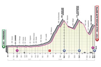 “Etapón alpino con invasión en Suiza”, lo define el Giro de Italia. Tendrá tres puertos de primera categoría, razón por la cual es la segunda jornada del giro de cinco estrellas. Los últimos 7 km son de fuerte ascenso, con pendientes del 10 %