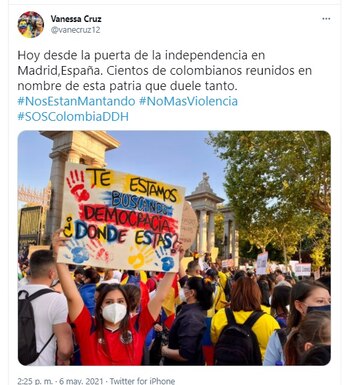Así como en Nueva York, también fueron cientos de colombianos que se reunieron en Berlín, Alemania, para protestar pacíficamente. Los manifestantes marcharon a la Embajada de Colombia y a la Puerta de Brandeburgo, uniéndose al Paro Nacional. “En Berlín, cientos de Colombianos salen a las calles y marchan al ritmo del acordeón de Alfredo Gutiérrez. Nuestro pueblo no va a permitir ninguna dictadura”, comentó un usuario en Twitter.