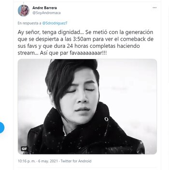 Otra fan K-pop comentó: “Ay señor, tenga dignidad... Se metió con la generación que se despierta a las 3:50 a. m. para ver el comeback de sus favs y que dura 24 horas completas haciendo stream... Así que par favaaaaaaaar”.