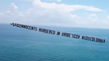 Este 12 de mayo nuevamente sobre el cielo de Miami, Estados Unidos, sobrevoló una avioneta con un mensaje en contra del expresidente colombiano Álvaro Uribe. “6.402 inocentes asesinados en el gobierno de Uribe”, se lee en la pieza que está en inglés y hace alusión a la cifra que entregó la JEP sobre los casos de ‘falsos positivos’ cometidos por el Ejército Nacional.
