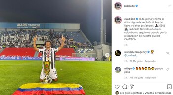 Cuadrado, sin embargo, no solo sobresale en el campo de juego, sino fuera de él. Desde que comenzó el paro nacional en Colombia ha apoyado a quienes se manifiestan y afirmado orar por su país. Y este 19 de mayo, al levantar su título número 11 desde que llegó a la Juventus, no fue la excepción.