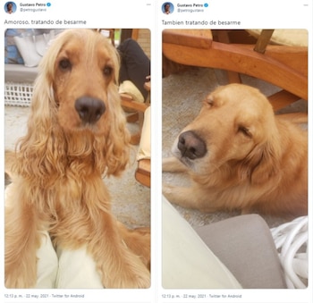 Desde la Colombia Humana, se rechazó la publicación e incluso anunciaron acciones legales. Mientras que Petro publicó en sus redes sociales unas curiosas fotografías de un perro de raza cocker spaniel inglés y un golden retriever que, según él, estaban amorosos e intentando besarlo.