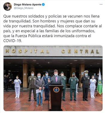 Durante la rueda de prensa estuvo presente también el ministro de Salud, Fernando Ruiz, quien acompañó el anuncio de Diego Molano sobre las dosis que empezarán a recibir los miembros de la Fuerza Pública.