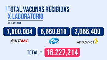Así mismo, Moscoso detalló que con este arribo, el país suma 16.227.214 millones de dosis recibidas, de las cuales 3.276.180 han llegado a través de Covax.