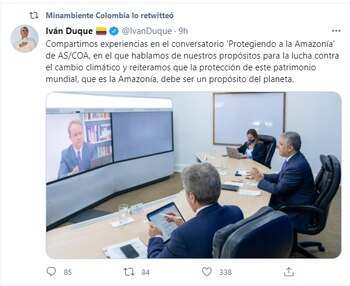 El presidente de Colombia, Iván Duque, participó este miércoles en un conversatorio virtual con The American Society Council of Americas (AS/COA) sobre la protección de la Amazonía, frente a lo que el jefe de Estado advirtió que, “cuando se habla de la coca y de los cultivos ilícitos, se habla del glifosato para enfrentarlo, pero muy poco se habla del deterioro ambiental que causan estos cultivos”.