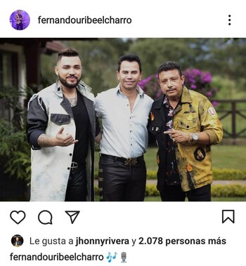 Además, en las diferentes publicaciones que hace desde su cuenta de Instagram Fernando Uribe (o ‘El charro’, como se le conoce artísticamente), en la que acumula más de 49 mil seguidores, se hace evidente la cercanía que hay entre padre e hijo, pues se le ha visto acompañándolo en momentos importantes, como cuando grabó el video de ‘Alguien me gusta’ junto a Jhonny y Andy Rivera.