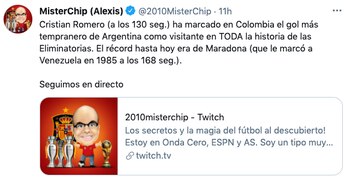 Según comentó el reconocido historiador y estadígrafo español, ‘MisterChip’, el gol de Romero significó el gol más tempranero de Argentina como visitante en toda la historia de las eliminatorias sudamericanas. Ese récord, dice, lo ostentaba Diego Armando Maradona, quien le marcó un gol a Venezuela transcurridos 168 segundos de partido. Fue el 26 de mayo de 1985, en un partido por las eliminatorias al Mundial de México 1986 disputado en San Cristobal: el ‘10’ argentino pondría arriba a los suyos en el marcador luego de un tiro libre. 2-3 vencería la ‘Albiceleste’ aquel entonces.