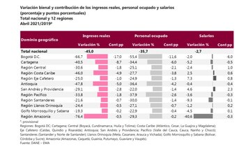 También informó que, de acuerdo con la Encuesta Mensual de Alojamiento, en abril de 2021 los establecimientos hoteleros del país registraron un crecimiento en sus ingresos reales del 987,5 %, en su personal ocupado una reducción del (-15,0 %) y en sus salarios un aumento del 52,5 % frente al mismo mes de 2020. “Comparado con el mismo mes de 2019 estas variaciones fueron del (-45,0), (-35,7 %) y (-2,7 %), respectivamente”, explicó la entidad.