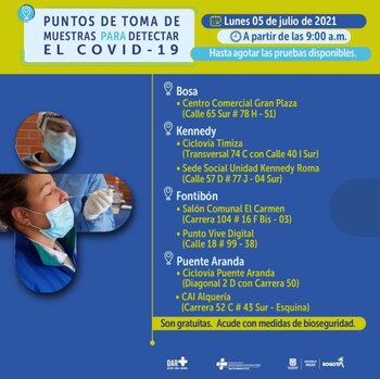 Estos son los puntos habilitados por la Alcaldía de Bogotá para el lunes 5 de julio: