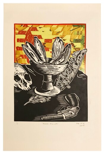 “Yendo al Museo del Prado, a la Reina Sofía, viendo estas obras de arte que yo había estudiado me motivó, y cuando regresé a Estados Unidos decidí que iba a tomar esto más en serio y me inscribí en una clase de grabado”. La puerta ya estaba abierta, así que entrecruzó ambas áreas para canalizar sus memorias como migrante y empezar el proceso de creación.