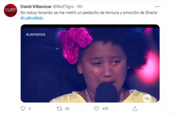 Si la historia de Shaireth ya había conmovido a algunos televidentes, la audición terminó de aflorar todas las emociones. Y es que no habían pasado más de 15 minutos del programa, pero las lágrimas de la menor de 8 años empezaron a salir cuando vio que Natalia Jiménez decía ‘Quiero tu voz’.