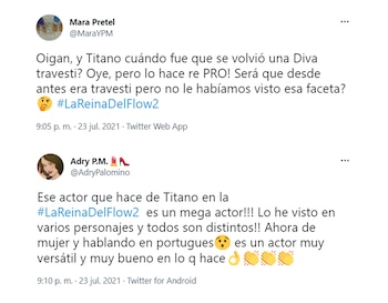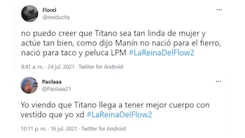“Pero que guapa dejaron a Titano mis respetos para el equipo de maquillaje, quisiera su talento”, “Le quedo muy bien la transformación a Titano si no hablaba ni me daba cuenta que era él” y “Titano que se siga vistiendo así es que me encantó en serio le luce demasiado”, son algunos de los comentarios que desató en redes el talento del actor bogotano.