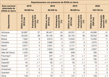 De acuerdo con el informe, el 69 % de las evidencias de explotación de oro de aluvión (Evoa en tierra) detectadas a partir de percepción remota se encuentran en la categoría de “explotación ilícita”, pues no cuentan con los permisos técnicos y/o ambientales requeridos, ni se encuentran en la categoría de “en tránsito a la legalidad”.