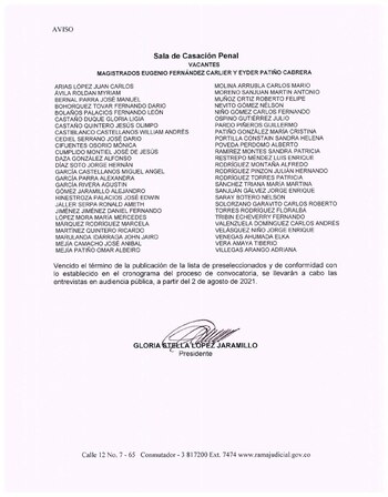 En el Consejo Superior de la Judicatura ya está en proceso la selección de los reemplazos, por lo que este 29 de julio se publicó una lista de preseleccionados que será enviada a la Corte Suprema de Justicia, donde se seleccionarán los nuevos magistrados.