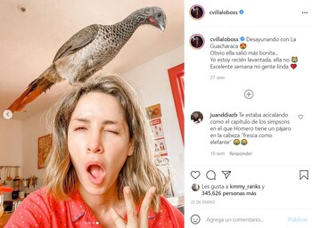 Y es que es allí, en el espectro digital, donde la actriz comparte detalles sobre su vida cotidiana quedó en el blanco de las críticas debido a una reciente publicación que hizo en su cuenta de Instagram, donde aparece “recién levantada”, desayunando y haciendo gestos divertidos junto a una guacharaca, ave que habita en los bosques premontanos y húmedos del país.