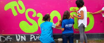 En total se ejecutaron, de manera simultánea, tres talleres con jornadas de capacitación intensivas en diferentes disciplinas, y en los que se les ofrecieron herramientas para elaborar tanto los murales, como las canciones y los videos. Todo esto fue realizado en el marco de la campaña ‘Somos Panas Colombia’, la cual es liderada por la ACNUR y que busca desalentar la xenofobia e incentivar la solidaridad hacia la población venezolana que llega a Colombia por cuenta de la crisis económica y social que se vive en el vecino país.