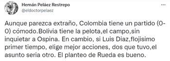 El periodista también lanzó a unos dardos a Reinaldo Rueda, que resaltó la importancia de haber conseguido un punto en La Paz: