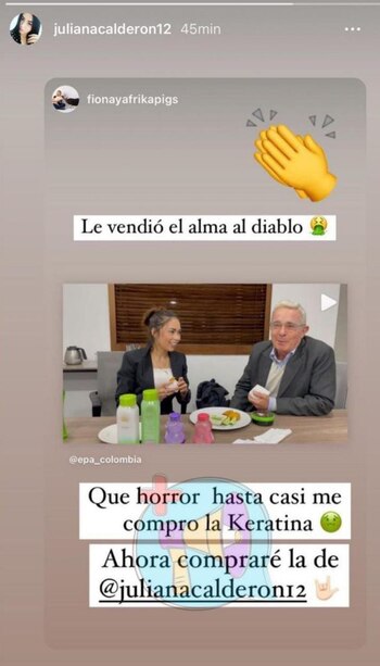 Juliana Calderón, hermana de Yina Calderón y con la cual Barrera parece haber tenido serios problemas en el pasado, fue una de las primeras personas en pronunciarse sobre la grabación y, según la opinión que compartió en sus historias de Instagram, considera que la influenciadora y empresaria “le vendió el alma al diablo”.