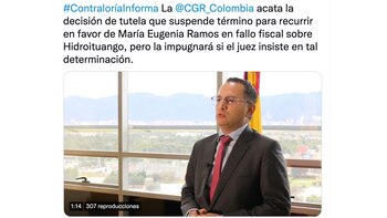 La Contraloría General de la República anunció este martes que acata la decisión del Juez 29 Penal del Circuito con Función de Conocimiento de Bogotá, que aceptó la tutela presentada por María Eugenia Ramos Villa y decretó como medida provisional la suspensión del término para recurrir el fallo de primera instancia en su contra, proferido dentro del caso Hidroituango.
