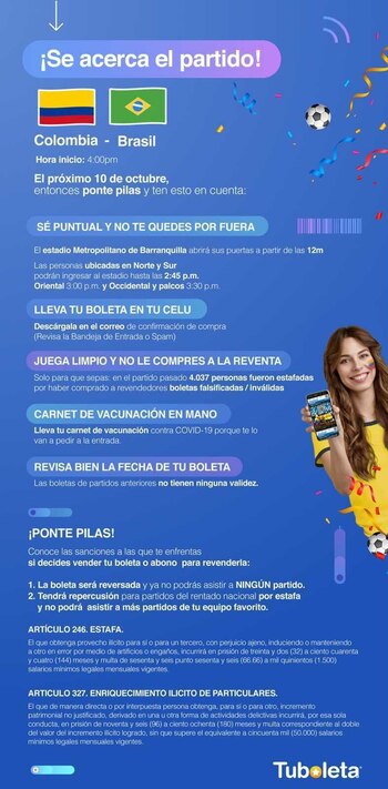 La Alcaldía de Barranquilla dio instrucciones similares, a las que se le agregaron los comentarios hechos esta tarde por el Jefe de la Oficina de Seguridad y Convivencia Ciudadana de la ciudad, Nelson Patrón, quien señaló a través de esa misma red social que “Patrullas COVID apoyan en el ingreso” al partido.