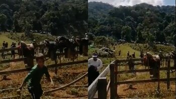 En otro de los videos que se divulgó principalmente en Twitter, se ve a varios campesinos, entre ellos algunos niños, y al fondo a los miembros de la Policía Nacional, en medio de detonaciones y lo que serían disparos con armas de fuego.