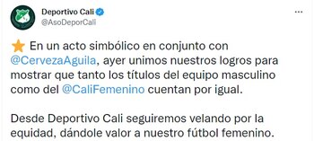 Conforme con el conjunto de la capital del Valle del Cauca, la estrella se debió a que unieron el título del Deportivo Cali Femenino este 2021. Es decir, no se trató de una equivocación en el conteo de los títulos obtenidos, como se llegó a creer.