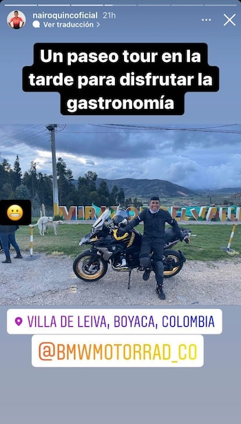 El Cóndor compartió unos retratos de un recorrido realizado en una lujosa motocicleta por tierras boyacenses, uno de ellos en el Mirador del Valle, en la vía Samacá-Tunja, donde se le vio sonriente. Lo que en el momento de la fotografía Nairo no se dio cuenta fue que una pareja de perros llamó toda la atención. Un emoji del ciclista dejó ver lo graciosa que resultó la escena.