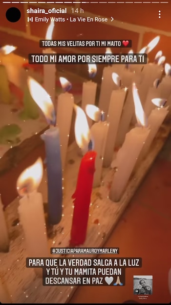 Además, en la noche del 7 de velitas, la cantante publicó una imagen en la que escribió “Todas mis velitas por ti Maito, para que la verdad salga a la luz y tú y tu mamita puedan descansar en paz”, publicación a la que le agregó #JusticiaParaMauroYMarleny.