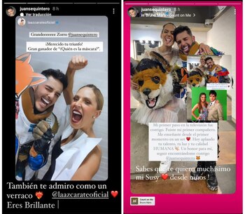 Con su personaje de ‘Zorro’, el bogotano de 33 años de edad + se convirtió en el favorito del público y el más votado. Tanto así que Lina Tejeiro no dudó en dedicarle hermosas palabras llenas de amor, pero de admiración también porque se conocen desde hace muchos años y han tenido la oportunidad de compartir en muchos proyectos juntos.