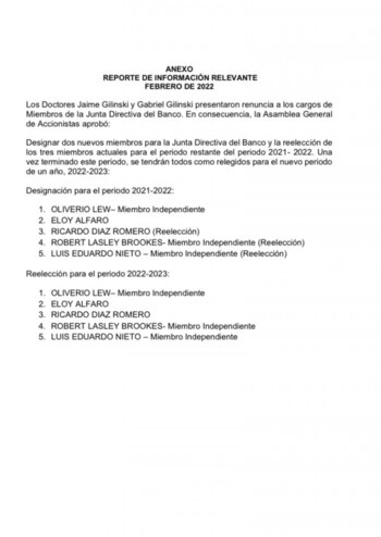 Así quedó la Junta Directiva del Banco GNB Sudameris para el periodo 2022: