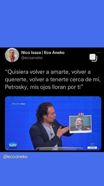 Entre muchas cosas las graciosas imágenes señalaban una extraña sensación de ‘Fico’ generada por Petro o una intención de voto a el candidato del Pacto Histórico o inclusive los llegaron a comparar con los personajes de la famosa telenovela ‘Betty la fea’. Las graciosas imágenes evidenciaron que tal vez no fue una buena idea el recurso de Federico Gutiérrez.