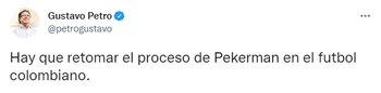 Gustavo Petro, candidato a la presidencia de Colombia por el Pacto Histórico, planteó la vuelta de José Néstor, encargado de clasificar a la Tricolor a Brasil 2014 y Rusia 2018, al equipo cafetero. “Hay que retomar el proceso de Pekerman en el futbol colombiano”, publicó en Twitter.