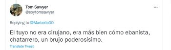 “El tuyo no era cirujano, era más bien cómo ebanista, chatarrero, un brujo poderosisimo” también le escribió otro tuitero a Marbelle.